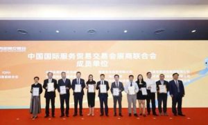 北京市政府、北京市商务局、北辰集团等相关领导为中国国际科技促进会、中国欧洲经济技术合作协会、全球化智库、中国会展经济研究会、全国商报联合会、中外运、中国太平洋保险、京东集团、阿里巴巴集团、五粮液公司、敦煌网、德勤中国、高通公司、美团、飞利浦公司、GE医疗、IQAir、安永中国、首都实业、北京银行、盈科律师事务所等40余家服贸会会展商联合会成员单位颁发证书。