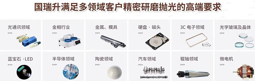 • 单晶/多晶/类多晶金刚石微粉&研磨液系列 精细抛光粉、抛光液&CMP抛光液系列 抛光条、磨头、抛光碟等牙科医用抛光材料 固态蜡、研磨膏等固态磨料 研磨油、液态蜡、分散液、研磨助剂等液态研磨溶剂 光纤研磨机、凸轮轴/曲轴/齿轮轴抛光机等精密抛光设备
