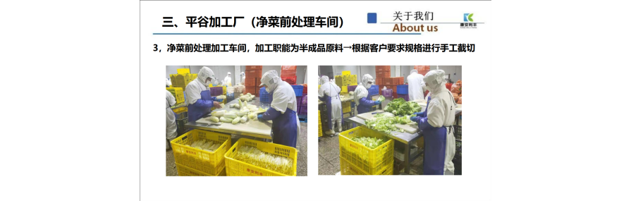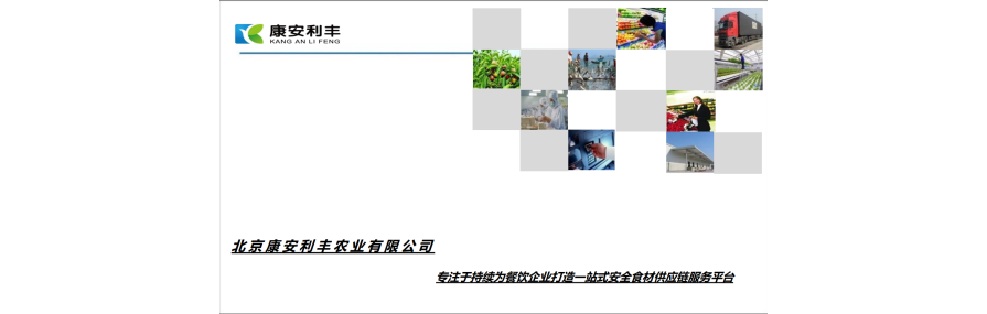 北京康安利丰农业有限公司是一家国有控股的现代化农业企业,隶属于首创集团,是北京市农业投资有限公司旗下专注于中餐全品项食材供应链的平台企业 [8] [14]。公司成立于2012年7月30日,总部位于北京市平谷区马坊镇 。公司以净菜加工及配送为核心业务,业务贯穿蔬菜种植、加工、仓储、冷链配送全产业链,致力于为连锁餐饮、学校、机关单位、生鲜超市等提供一站式餐饮食材供应服务 。